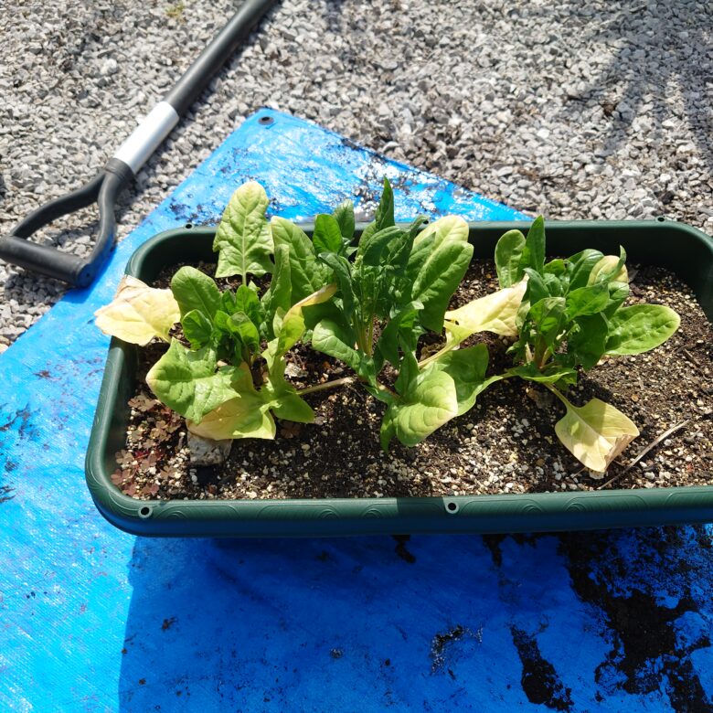 春夏野菜の土作りのため、3月22日にホウレンソウをすべて収穫しました。間引きを控えめにした密植したスペースも大きく成長しており、収穫量がしっかり確保できました。ホウレンソウは害虫被害にも合いにくく、改めて育てやすい野菜だと実感しました。