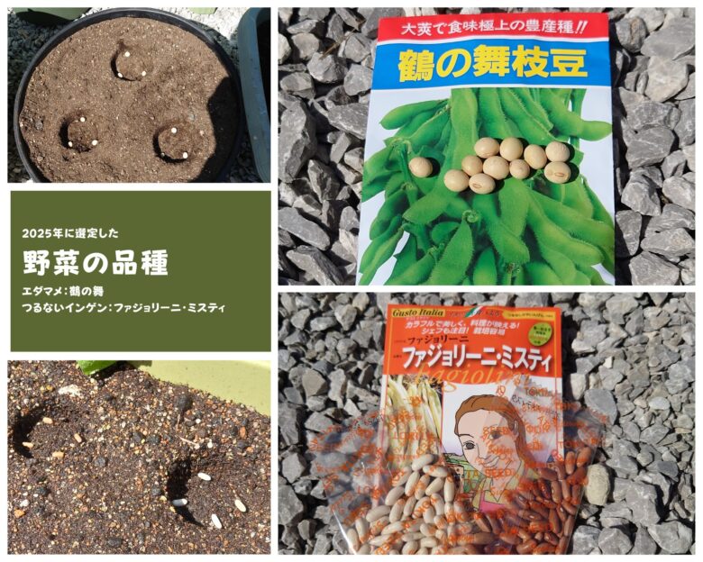 2025年にしま農研で行うエダマメとつるなしインゲンについて、品種選定・使用するプランターなどの前提条件をまとめました。