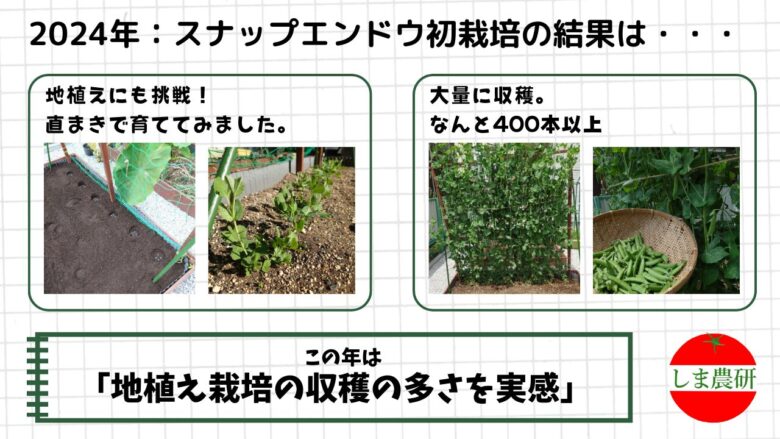 前章では、しま農研がこれまで育ててきたスナップエンドウの記録や、